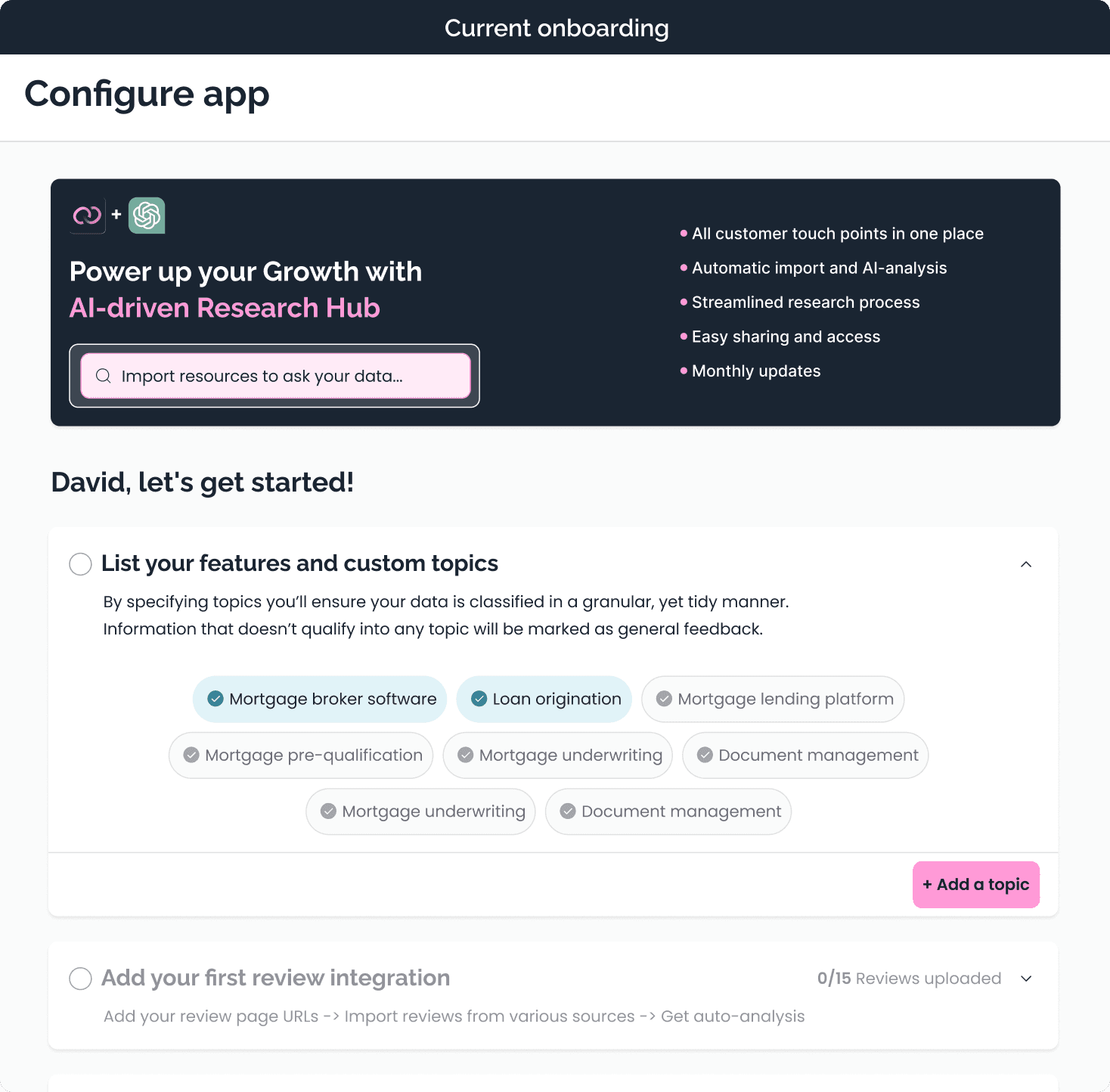 I led the redesign of the onboarding experience, using a mix of user interviews, behavioral data, and feedback processed through Collectif itself. The result was a simpler, clearer, and more confidence-building first experience—one that helped users get value from day one.
